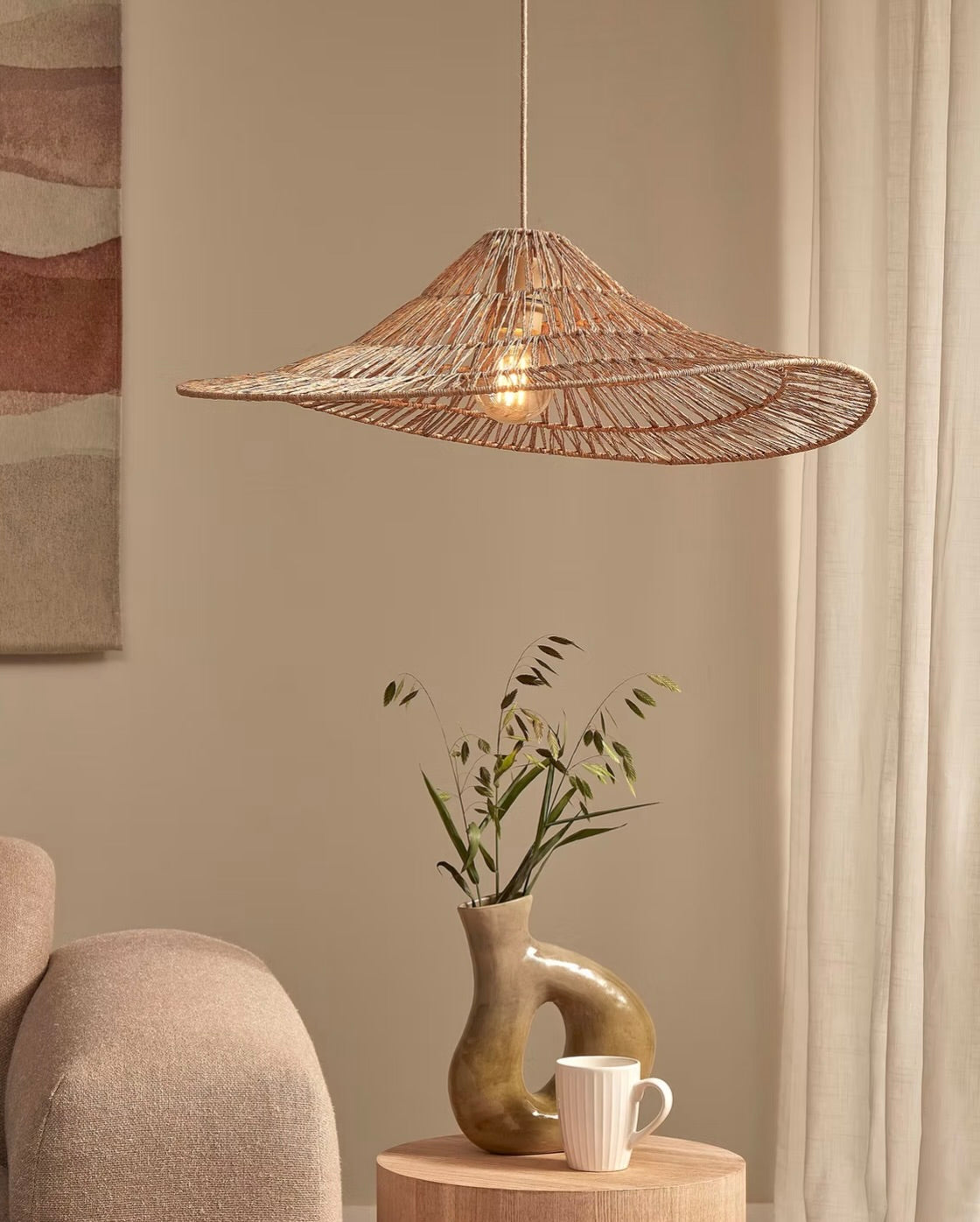 Gebruik de natuurlijke uitstraling van deze lampen als basis voor een rustig kleurenpalet met veel wit, beige, zand- en groentinten. Combineer met houten meubels, zachte stoffen en andere duurzame materialen zoals rotan en jute. Zo ontstaat er een harmonieuze en bewuste leefomgeving waarin sfeer en verantwoordelijkheid samenkomen.