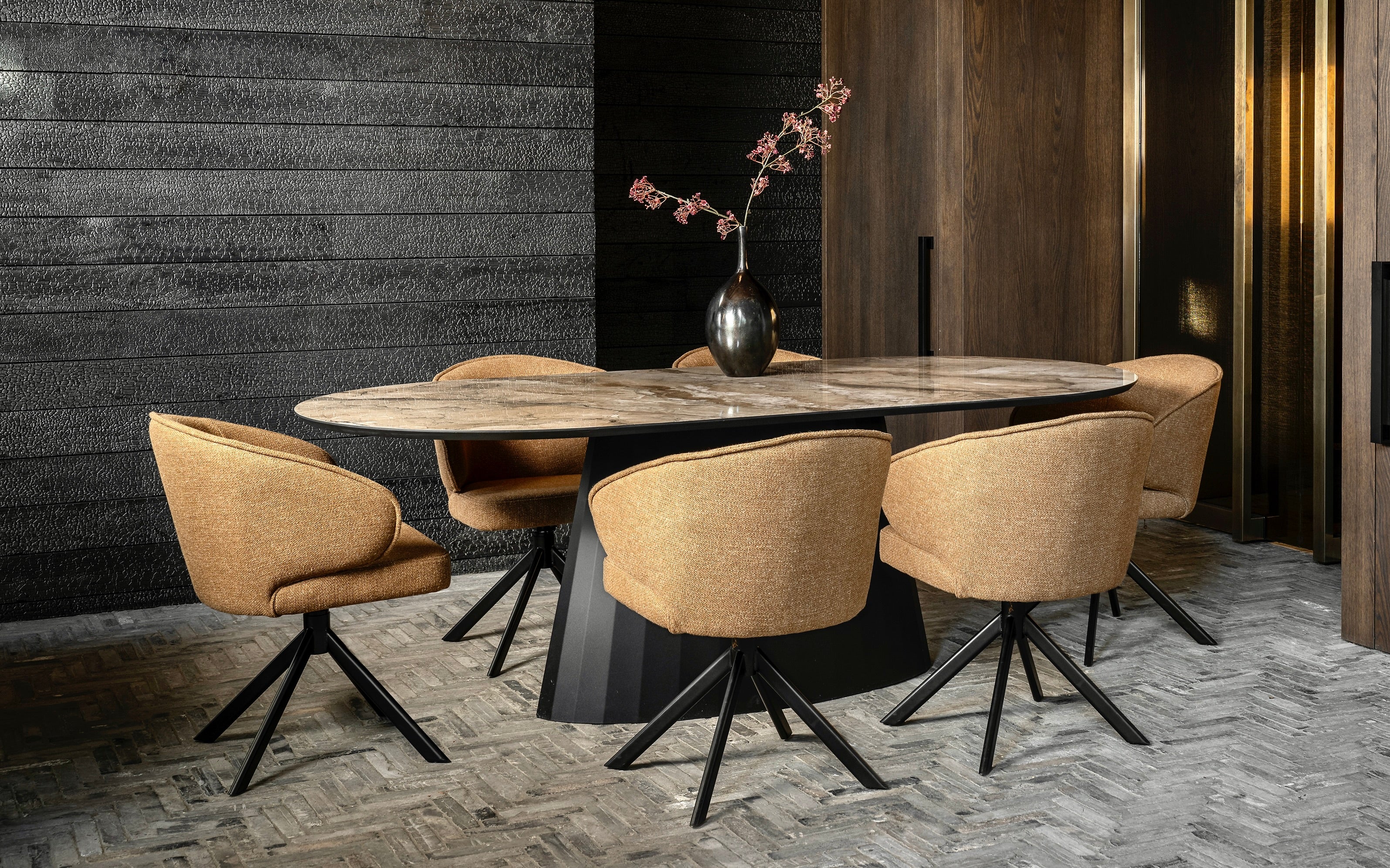 Mix verschillende stoffen of kleuren van hetzelfde model voor een speels en eigentijds effect. Of ga juist voor een uniforme look met één kleur en ondersteltype voor rust en een luxe uitstraling. Combineer de stoelen met een houten of keramieken eettafel en voeg warme verlichting toe voor een uitnodigende setting. Moods stoelen zijn niet alleen mooi om te zien, maar ook ontworpen voor lange, comfortabele diners.