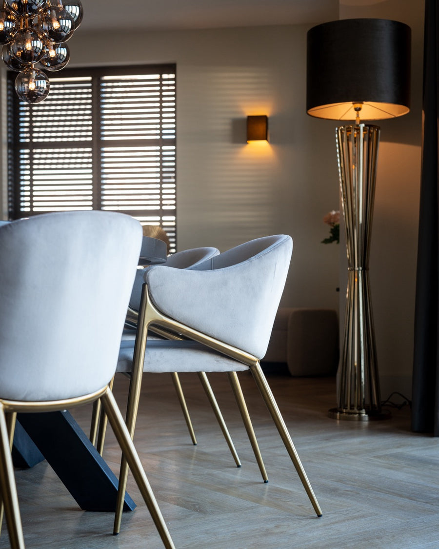 - Chic & verfijnd: Tafellampen met gouden accenten, glazen voet of stoffen kap in luxe tinten.