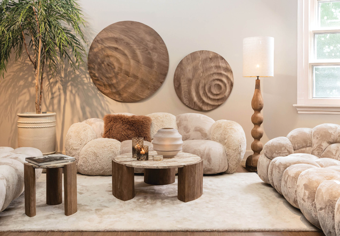 Kies voor robuuste houten meubels met een strakke vorm en combineer met natuurlijke materialen zoals linnen en rotan. Werk af met neutrale tinten, sfeervolle verlichting en accessoires in metaal of natuursteen voor een warme, moderne look.