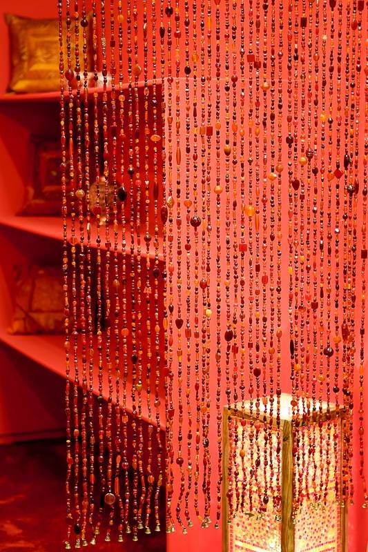- Op 90cm breedte 40 strings glaskralen met belletje