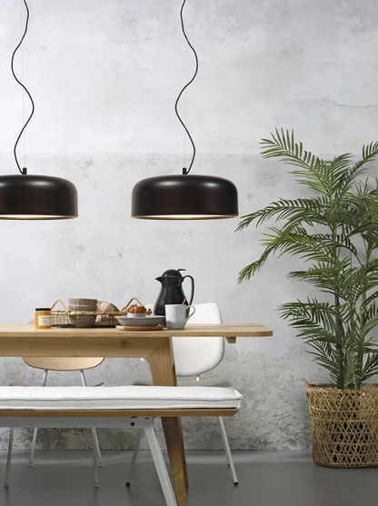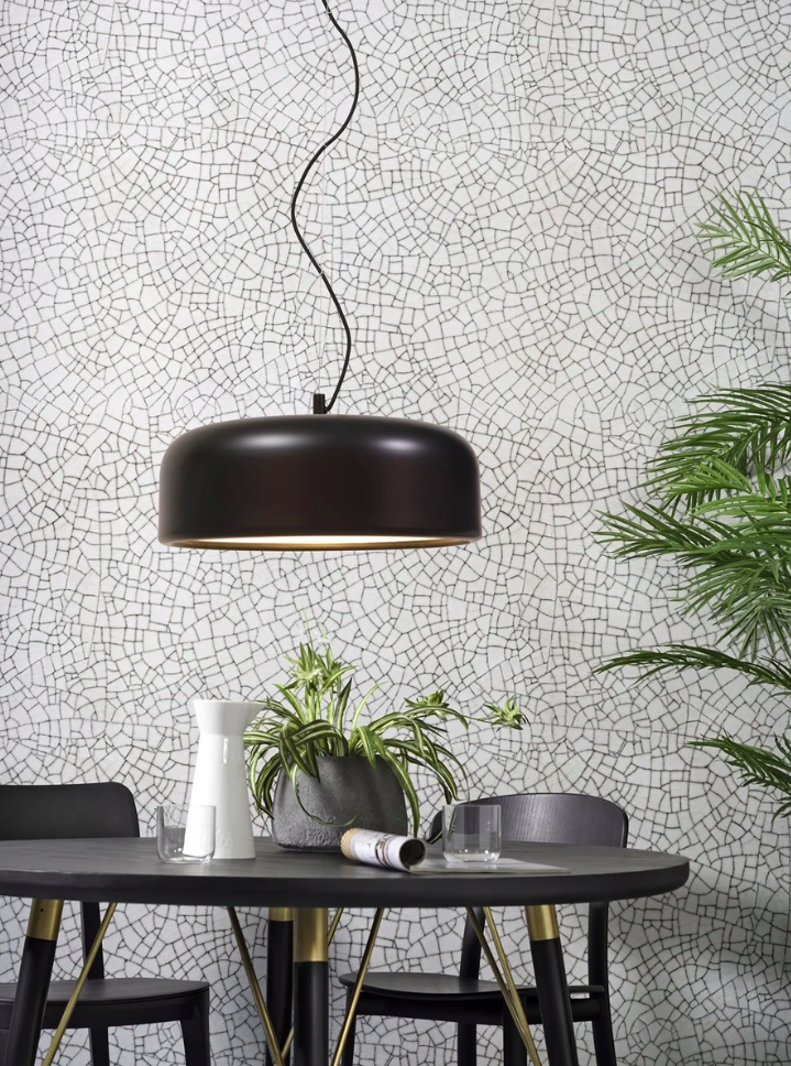 De zwarte hanglamp Marseille, gemaakt van aluminium (48,5 x 17,5 cm), straalt een warme moderne sfeer uit. De lamp heeft een ronde kap met een witte binnenkant voor helder licht en is in hoogte verstelbaar tot 3,5 meter.