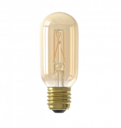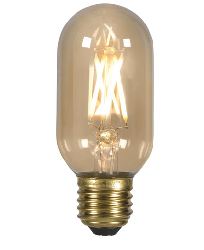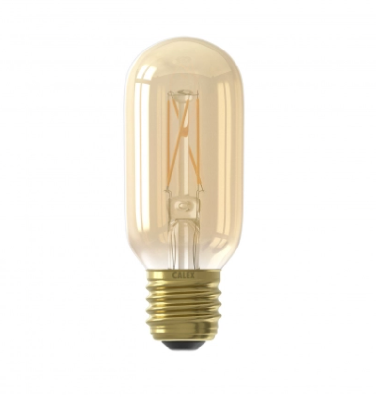 E27 led filamentlamp buis, 250 lumen - Zoek jij een buisvormige led lamp met een brede fitting? Deze goudkleurige lamp heeft helder glas en zichtbare filamenten die lijken op een ouderwetse gloeilamp. Dit model is dimbaar en heeft een vermogen van 4 watt. De goudkleurige lamp geeft extra warm wit licht met een lichtsterkte van 320 lumen.