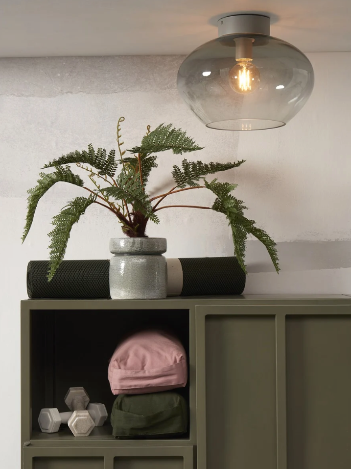 Ontdek de tijdloze plafonnière Bologna, een stijlvolle en functionele toevoeging aan elk interieur. Met zijn klassieke, getinte grijze glas straalt deze charmante lamp een sfeervol en diffuus licht uit, perfect voor diverse ruimtes in huis.