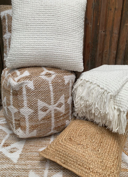 Rechthoekig vloerkleed gemaakt jute en witte chenille, verkrijgbaar in 4 maten.