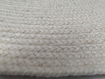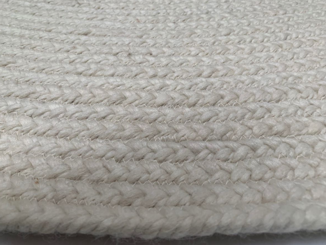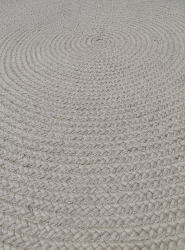 Dit vloerkleed is gemaakt van 100% gevlochten Nieuw Zeeland wol in ivoorkleurige tint. De wol is na spinnen, gevlochten, waarna deze rond gestikt zijn tot dit mooie vloerkleed. Het kleed is bestemd voor het interieur, naast de sofa of op de slaapkamer bij het bed. Het comfort en behaaglijke gevoel van dit kleed, maakt dat je ook naast de sofa gewoon heerlijk op de grond op dit kleed kunt zitten. 's ochtends wakker worden en je bed uitstappen met dit behaaglijke gevoel onder je voeten, geeft echt het genieten van het luxe thuisgevoel! Het vloerkleed is er met een diameter van 150, 200, 250 of 300 centimeter beschikbaar in ivoorwit, beige en grijs.