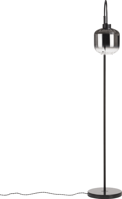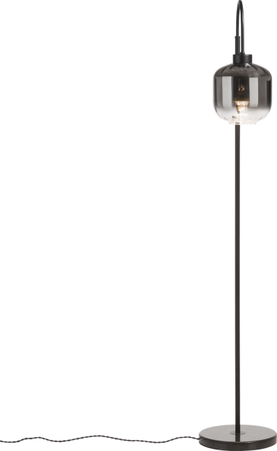 Deze vloerlamp Essex is voorzien van een moderne glazen lampenkap in antraciet dat steeds lichter wordt tot aan transparant. De kap heeft een speelse welving in het glas. Deze vloerlamp is deel van de 'Essex' serie bestaande uit een tafellamp, een vloerlamp en een hanglamp.