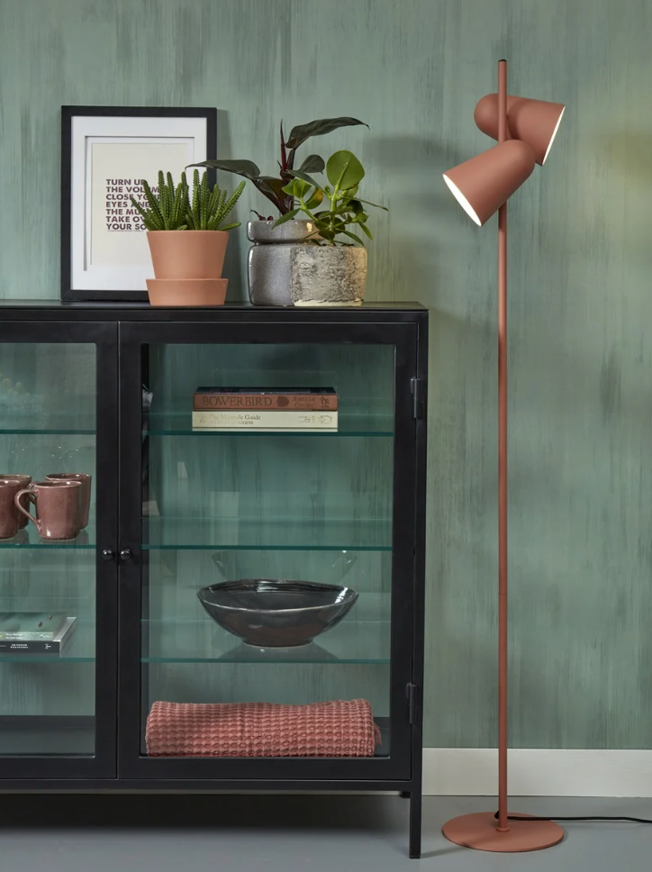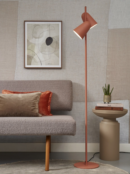 De Salamanca vloerlamp, met een moderne en eenvoudige uitstraling, is ideaal om bij te lezen. Met een oranje frame, draaibare kappen en een handige aan-uit knop.